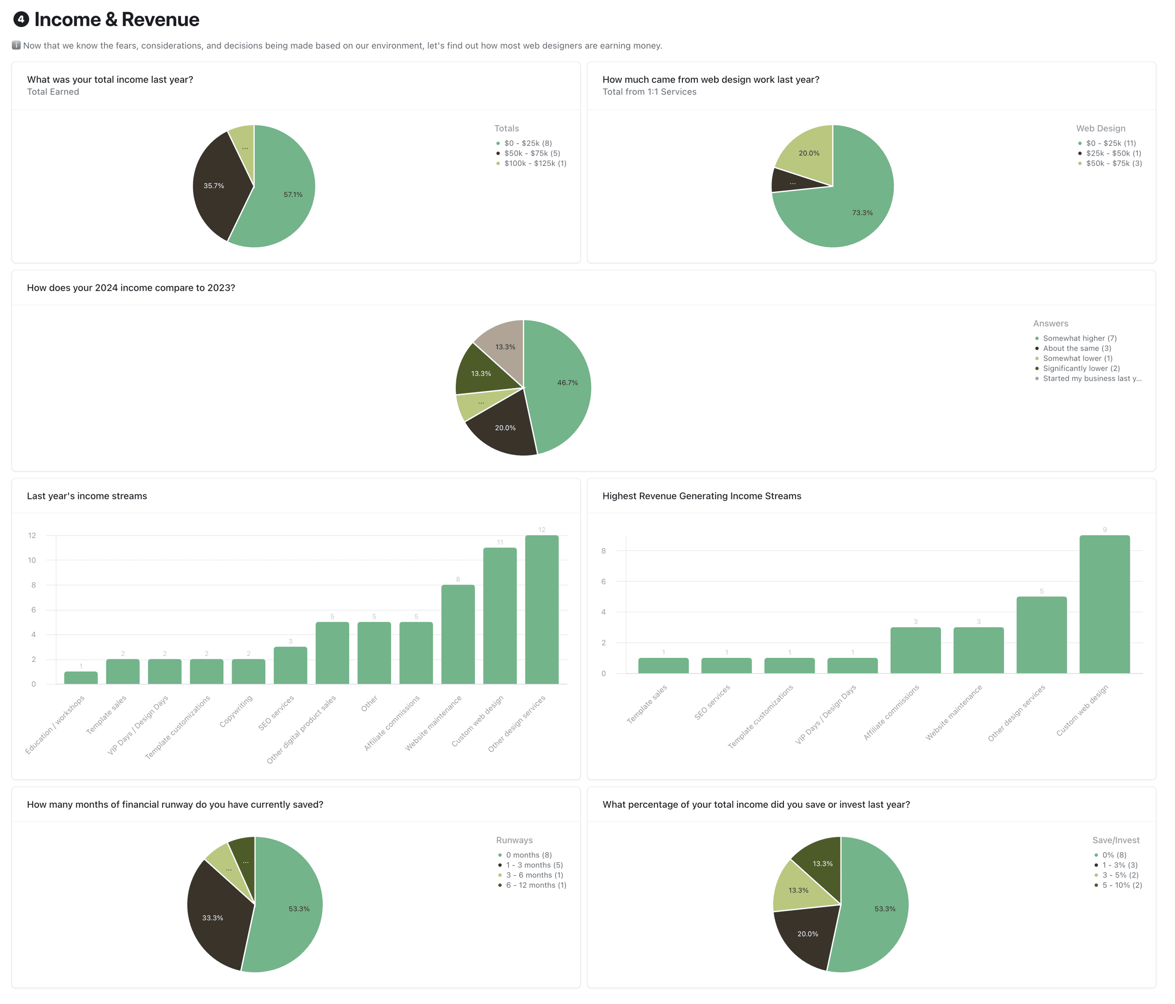 We literally just want to know the baseline & financial trends of where web designers are in their financial-related facts & feelings this year so we can use that real-time information to make decisions in our businesses. We want YOU to have that same opportunity, so we're going to share the results with everyone!